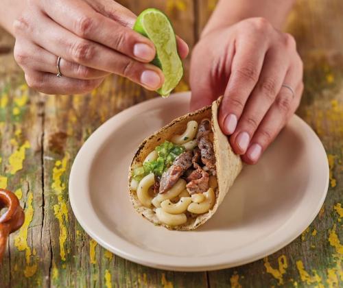 4. Sirve el guisado sobre tortillas calientes y acompaña con salsa al gusto.